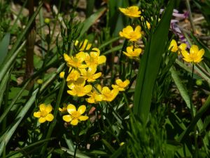 | そしていよいよサクラソウ。準絶滅危惧種の可憐な花をしばし観察します。出発前に頂いたさいたま市教育委員会発行のパンフレットによると、サクラソウは毎年2月頃地上に芽を出し、花は4月上旬に見ごろを迎え、その後はヨシやオギが強い日差しから地下茎と根だけになったサクラソウを守り、人の手による刈払いや草焼きも行われ、自然と人の関わりがサクラソウの良い環境を維持しているそうです。 |