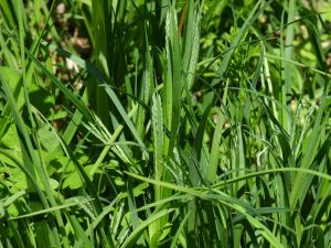 自生地をひととおり周って集合場所の桜草公園管理棟まで戻ってきて植物観察会も終了です。終了直前に観察したチガヤについてリーダーより、オオヨシキリがよく巣材に使う植物だ、と説明がありました。鳥合わせ的なものもありませんでしたが、一旦散会した後、希望者のみ”自生地”ではない公園入口の土手などを観察するおまけ観察会もありました。ここでもそこ一箇所にしか生えていなかったであろう、シロバナホトケノザなど観察しました。さらに上空を飛ぶイワツバメも見ました。