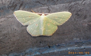 ヨコツメアオシャク:珍しい蛾を見つけた。綺麗だったので記録に残した。この蛾は5月~8月に見られる様だ。 |
