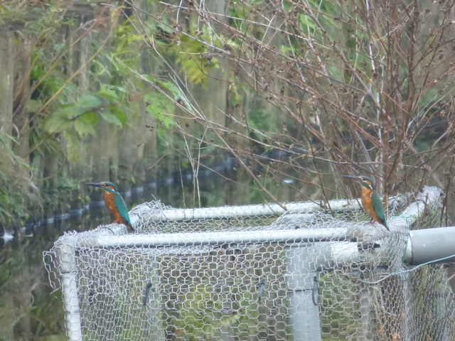 スタート直後の池にはカワセミが2羽、雌雄のようです。