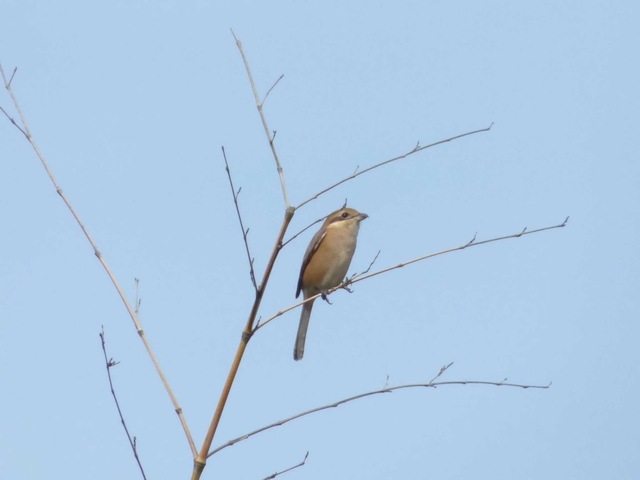 オオタカが出現!繁みではアオジがかくれんぼ、モズはその居場所を主張します。 |