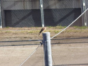 湖と反対側のグラウンドではチョウゲンボウがお食事中。 |