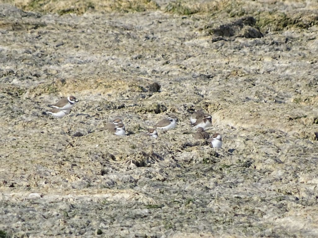 浜を西へ進むとやっとシロチドリが見つかりじっくりと観察。海上にはスズガモの大群に混ざってウミアイサやハジロカイツブリもいます。