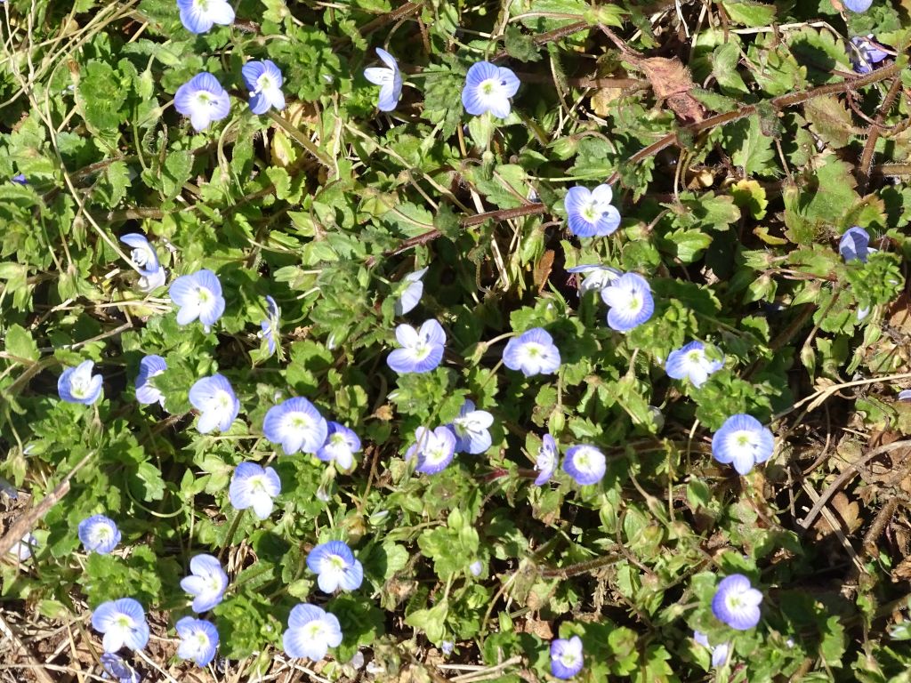テストコースへ戻とこちらも春の定番、イヌフグリ。何度見てもきれいですね!!!なんて関心しているとオナガの声が聞こえてきます。程なく10羽くらいの群れが飛んできて近くの大木に。一羽が咥えていたのはトカゲに見えたのですが、、、