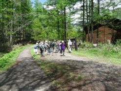 いつもながら、天候が心配な探鳥会ですが今回は両日とも好天の予報です。先週に引き続き気温が高そうです。朝晩は冷え込むようですが、日中は気温がぐっと上がるとの話でした。長野駅に参加者20名がそろい、バスで戸隠森林植物園へと向かいます。