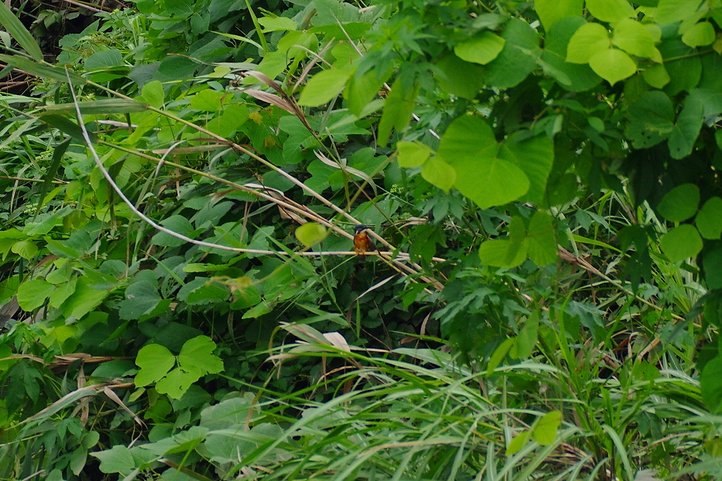 次は芝川に架かる橋から水面を見たところ、「カワセミを発見」と大声が!全員でスコープを合わせますが、なかなか見つけられません。ようやく木々の奥にカワセミを見ることが出来ました。