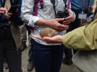 上り勾配は段々がきつくなり、鳥影も薄くなってくるなか、またも人だかり。今度は「哺乳類」です。冬眠していた巣穴から落ちてしまったのでしょうか?丸まっているので顔がわかりませんが、手のひらにすっぽり乗ってしまうくらいの大きさ。ヤマネ?、、、落ちていたところに戻し、ゴールのロープウェイの山頂駅を目指します。