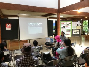 アカコッコの観察後は、アカコッコ館の解説員の方に三宅島がどんな島か、どんな鳥が見られるかのパネル説明をいただき、2000年の噴火の記録映像も見させていただきました。それからは観察スペースで水場の観察。シチトウメジロやイイジマムシクイ、オーストンヤマガラが水浴びに何度も来てくれました。じっくり観察会できるこのスペースは参加者の皆さんから大好評でした。