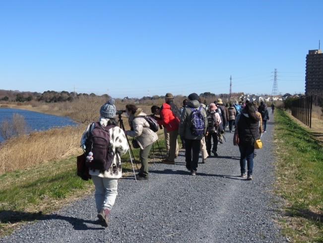 立春間近の2月2日(日)、芝川第一調節池をメインコースとする民家園周辺定例探鳥会が開催されました。当日のリーダー6名を含めて57名の参加があり、風も穏やかな晴天の中をスタートしました。