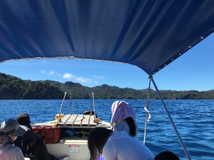 この日は、午後3時の出航までフリータイムということで、父島から少し南にある「南島」に行きました。南島へ行くためにはガイドの同行が必要なため、父島のツアー会社に予約して、ツアー会社の船に乗せてもらって行きます。今回は知り合いから紹介していただいた「小笠原自然探検隊ONE」さんにお願いしました。(http://ogasawara-one.com/)さっそく南島に向けて出発!