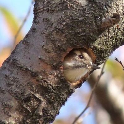 コゲラが巣穴から顔を出していた |
