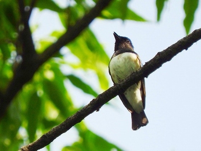 写真②、下の録音①②と動画は、この大型連休中、自宅近くの公園で見られたオオルリで、朝方30分以上さえずり続けて楽しませてくれた。翌日には姿は見られなかった。 |